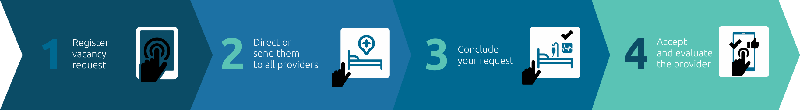 Após o login no sistema o Solicitante poderá cadastrar o perfil de quantas vagas tiver necessidade. Imediatamente o mesmo poderá acompanhar as ofertas feitas pelos Prestadores da rede credenciada. Depois basta escolher a oferta mais adequada e dar o aceite para iniciar a etapa de encaminhar o Paciente.